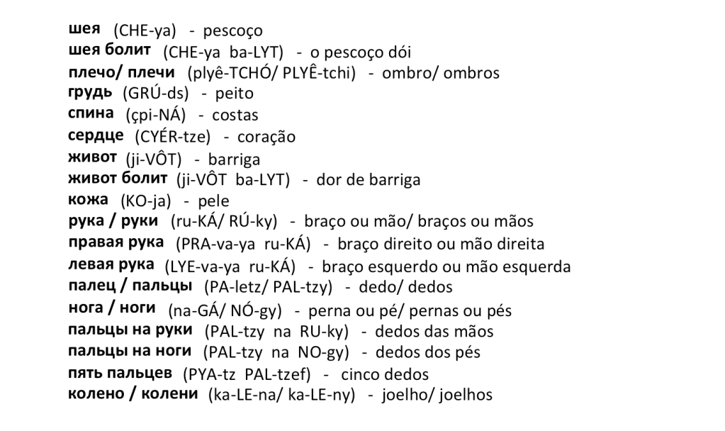 Russo – Glossário do Viajante: Corpo Humano e Saúde
