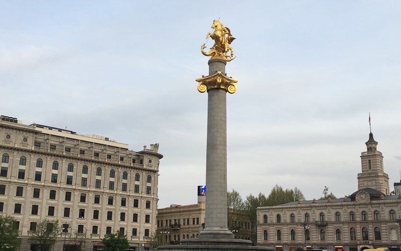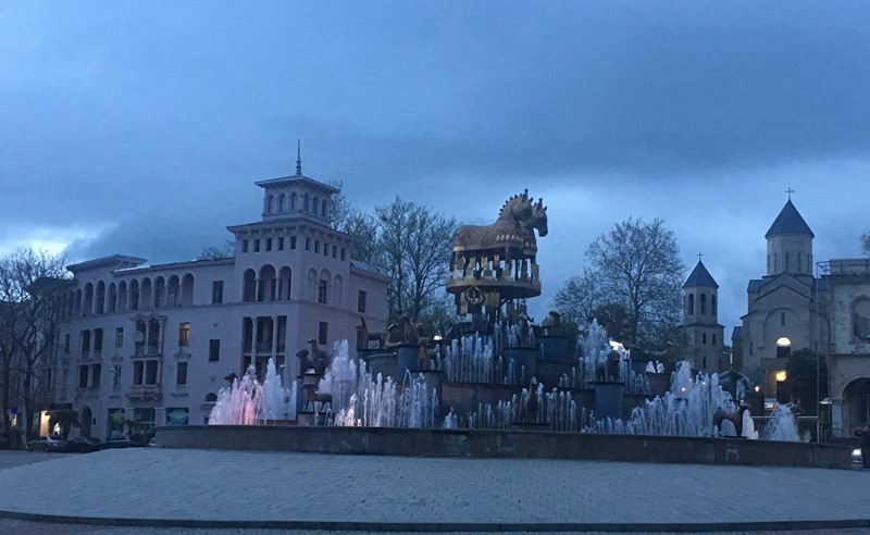 Chegados à Avenida Rustaveli, principal artéria da cidade, estávamos no início do nosso percurso. Passámos pelo Teatro de Ópera e Ballet, pelo Museu de Arte, Escola Pública e Parlamento entre outros e no fim encontra-se a Praça da Liberdade com a Estátua de S. Jorge.