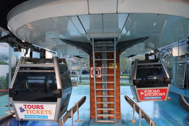 À medida que íamos subindo os nossos olhos regalavam-se a contemplar tanto o que ficava para trás como o que iria fazer parte dos nossos próximos momentos: a Fortaleza de Narikala e a Estátua de Kartlis Deda (uma figura de mulher Georgiana – o símbolo da cidade – a qual numa mão tem uma taça de vinho representando hospitalidade e na outra, na via das dúvidas, uma espada! )