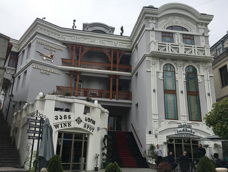 Fomos almoçar no Tiflis Palace, que é em simultâneo hotel e restaurante, com traços modernistas mas também com traços típicos da arquitetura da cidade.