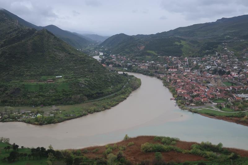 (este mosteiro ortodoxo é um dos mais antigos da Geórgia, tendo sobrevivido a todas as épocas até hoje) e apreciar a paisagem desse local alto – indescritível de tão maravilhosa que é! Os Georgianos sempre tiveram um talento desmesurado para escolher ótimas localizações para os seus locais sagrados: o rio Mtlwari a formar uma espécie de triângulo e a banhar as margens bem como a cidade do lado direito!