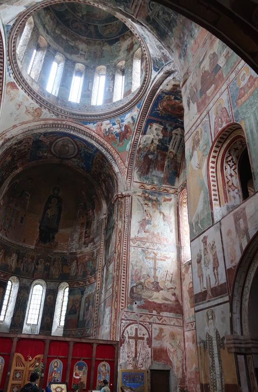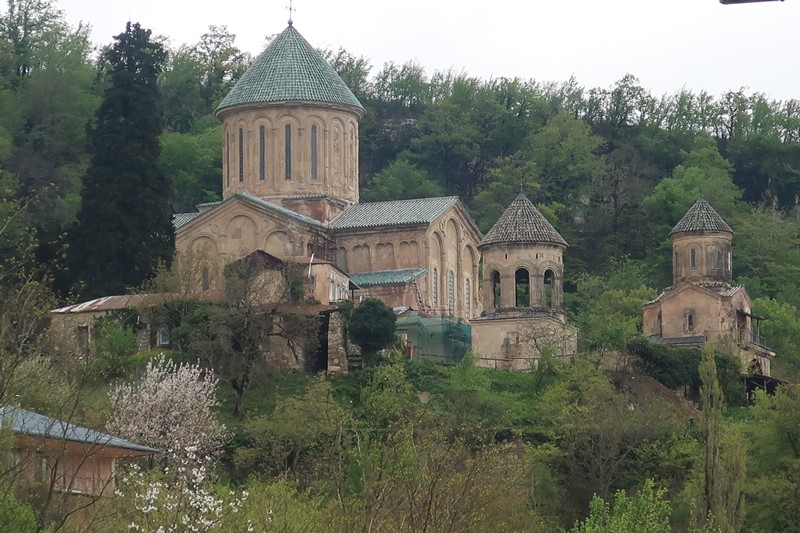 Hoje ainda teríamos muito para percorrer, mas era sempre com entusiasmo e prontidão para desvendarmos mais um local – o Mosteiro de Gelati. Situa-se numa encosta arborizada a 8 km de Kutaisi. Foi o maior e mais magnífico mosteiro que visitámos. Aí observámos os mais ricos e coloridos frescos ao longo dos vários espaços do mosteiro.