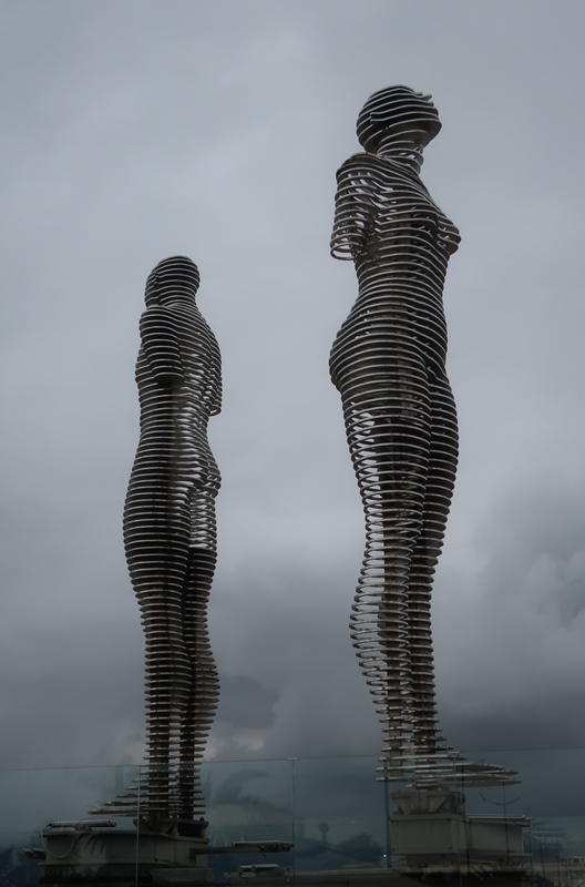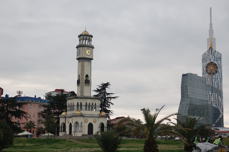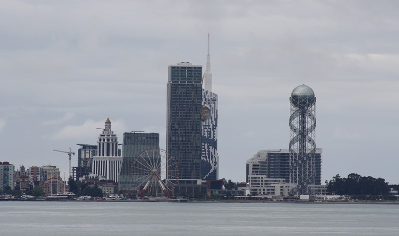 De seguida fizemo-nos à estrada, de novo, igual aos demais anteriores quilómetros. Já relativamente perto apareceu uma plaquinha a dizer Batumi. Será que a partir daí seria mais fácil? Já chegava de nos sentirmos quase numa quinta entre animais e com uma estrada a condizer! Quando menos esperávamos sentimo-nos quase numa autoestrada e começávamos a vislumbrar Batumi e o Mar Negro. Mas chegámos a pensar que estávamos enganados e que tínhamos entrado noutro país, pois apesar de “termos estudo a lição” ia para além do que esperávamos encontrar! As primeiras imagens da cidade são de facto contrastantes com tudo o que já tínhamos visto na Geórgia! Mas ainda bem que há diferenças!