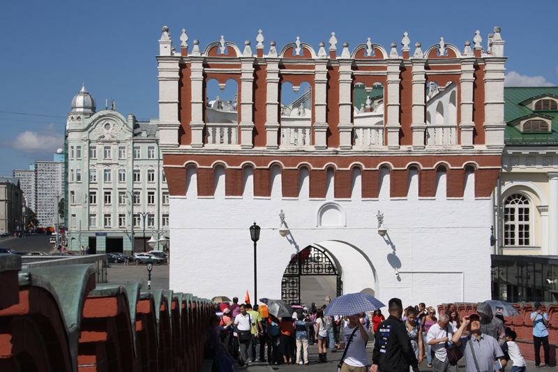 Deslocámo-nos de metro até à estação Alexandrovsy Sad (linha 4 azul clara), que dá acesso ao jardim de Alexandre. A compra de bilhetes e admissão é feita na Torre Kutafiya (que se situa no exterior do Kremlin, no jardim) passando depois pela Torre da Trindade. A partir daí encontramo-nos no interior do Kremlin. (P.S. – a entrada das visitas guiadas é feita noutro local – Torre Borovitskaya)