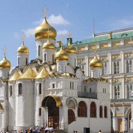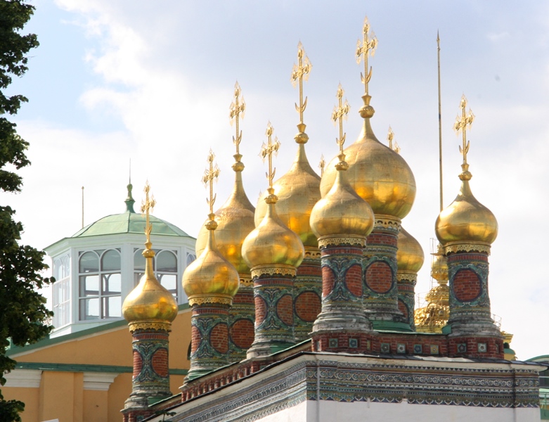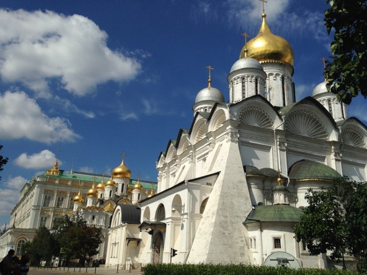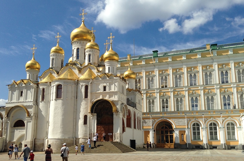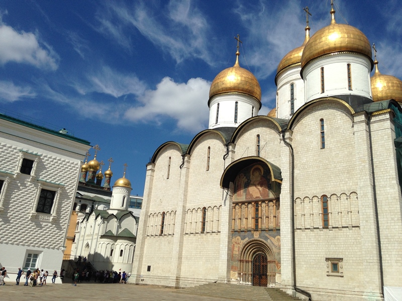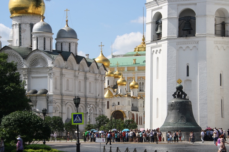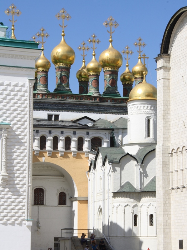 Deixámos a rua principal e dirigimo-nos para a Praça das Catedrais. É uma praça central no Kremlin para onde todas as ruas convergiam no séc. XV. As principais Catedrais são as da Assunção (de 1479), Anunciação (de 1489)São Miguel Arcanjo (de 1508).