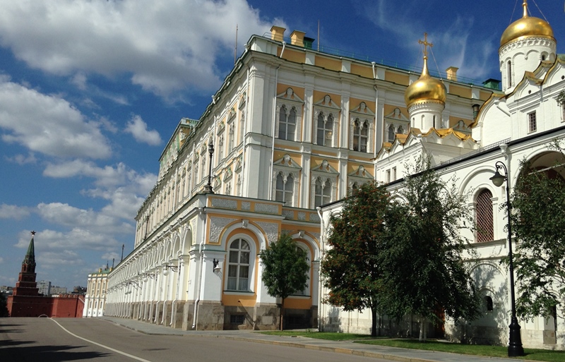 Por detrás da Praça das Catedrais situa-se o Grande Palácio do Kremlin construído em 1849 para o Czar Nicolau I e tendo passado a ser desde essa altura residência oficial dos czares em Moscovo.
