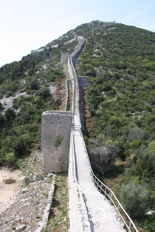 fomos visitar as Muralhas de Ston. O acesso às muralhas (assim como a compra do respetivo bilhete) pode ser feito a partir de Ston ou de Mali Ston. O passeio permite não só apreciar a estrutura defensiva, como desfrutar de paisagens deslumbrantes sobre Ston e as suas salinas, sobre Mali Ston e o seu pequeno porto de mar e sobre a Península de Pelješac.