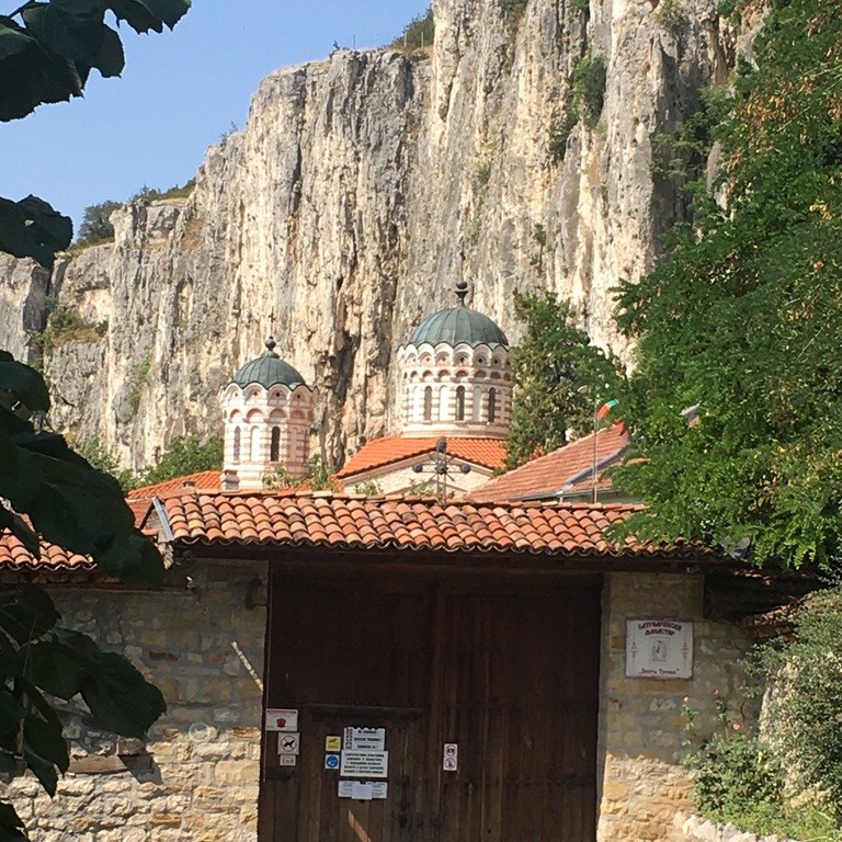 Era nossa intenção visitar também o Convento Santa Troista pela sua fantástica localização (situado contra penhascos rochosos no rio Yantra). Apesar de pensarmos que andávamos perdidos pois o acesso era feito através duma estrada parcialmente esfaltada, estreita, com um piso irregular, e muita vegetação, tornando-o algo sinistro, passados os quilómetros e tempo indicado no Google Maps, lá começámos a vislumbrar o que correspondia ao local que nos tínhamos proposto atingir. Apesar da informação consultada nos informar que estaria aberto, nós bem como outras pessoas fomos surpreendidos com o letreiro a indicar que estavam em oração! O aspeto do caminho associado à desilusão do mosteiro estar fechado levou a que um dos pretensos visitantes proferisse que estava à espera de ” find nothing but dead bodies”. Limitámo-nos a tirar apenas algumas fotografias do exterior.