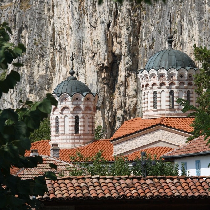 Casas altas e estreitas balançam em penhascos íngremes que se erguem acima do sinuoso rio Yantra. Dedique-lhe algumas horas.