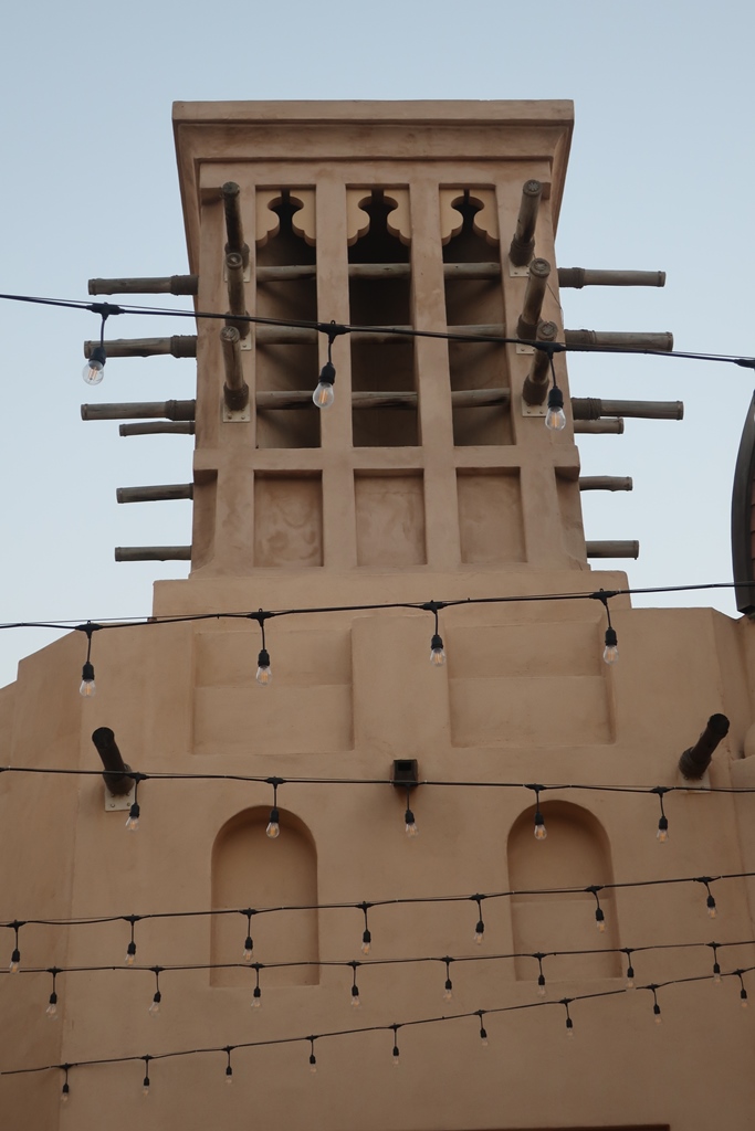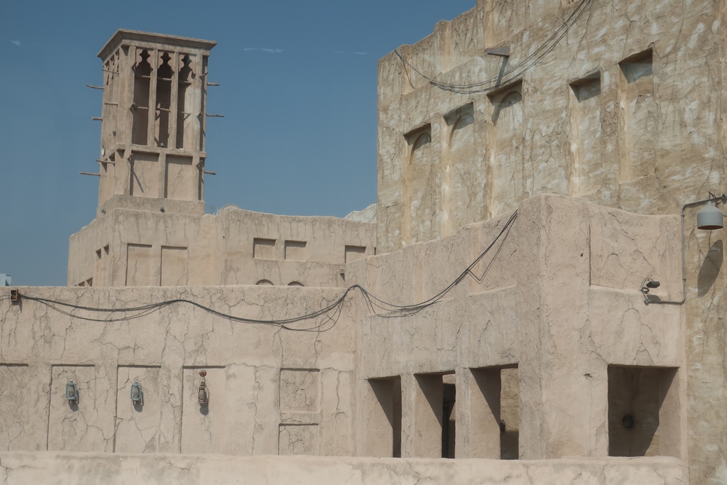(sistema utilizado para refrescar as casas – podem ser consideradas precursoras do sistema de ar condicionado moderno) bem como um troço da antiga muralha /forte da cidade (do séc. XVIII) ao pé do qual se situam essencialmente o Museu do Dubai (fechado para reconstrução) e o Souk (mercado) de Bur Dubai (perto do cais dos barcos para a outra margem do Creek – Deira).
