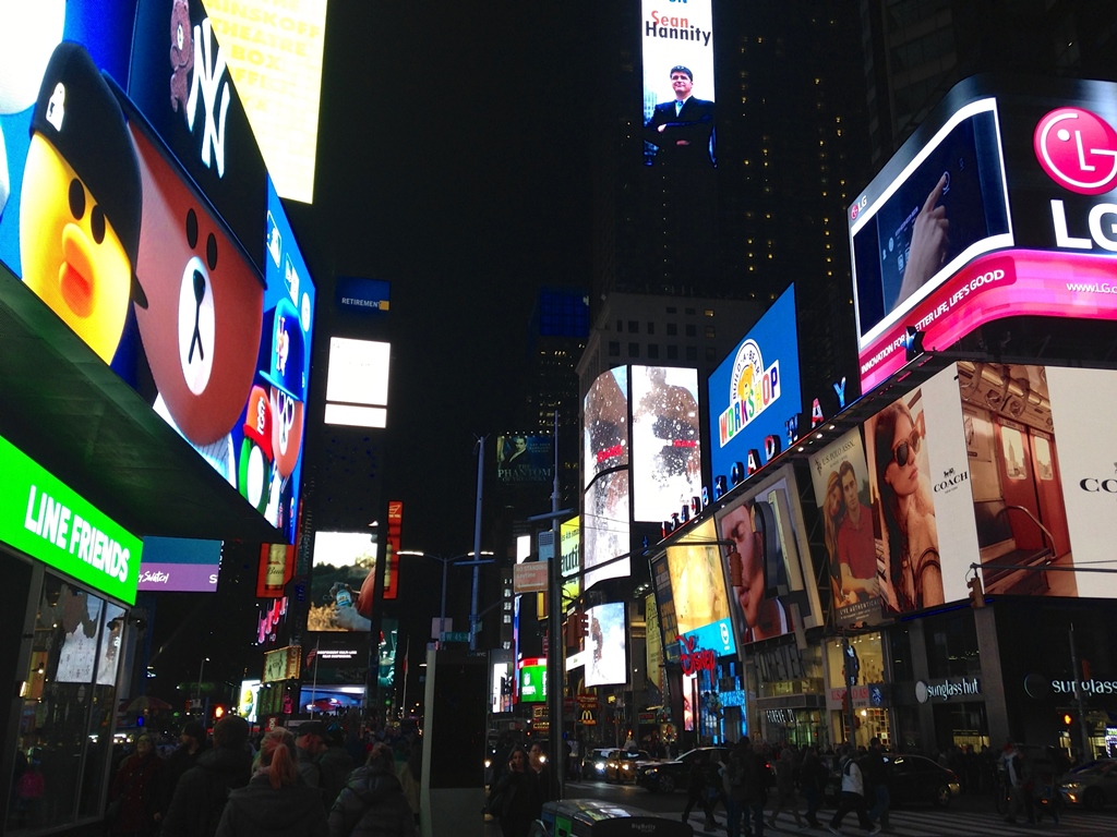 Times Square – ou vulgarmente apelidada de “Encruzilhada do Mundo” pois é o resultado de vários cruzamentos e esquinas é, tão somente, o cruzamento mais famoso de NY representando também o símbolo do animado Theater District, que inclui a Broadway. Todos aqueles letreiros luminosos (para propósitos de publicidade), que lhe conferem uma beleza inigualável, devem-se ao facto de naquela área comercial todos os edifícios serem obrigados a instalá-los. É considerado o ponto turístico mais visitado do mundo, tendo sido mais recentemente modificada para atender o grande fluxo de turistas e transeuntes, com a definição de áreas exclusivas para pedestres. A zona da Times Square situa-se na junção da Broadway com a 7th Avenue, entre a 42nd e a 47th Streets.