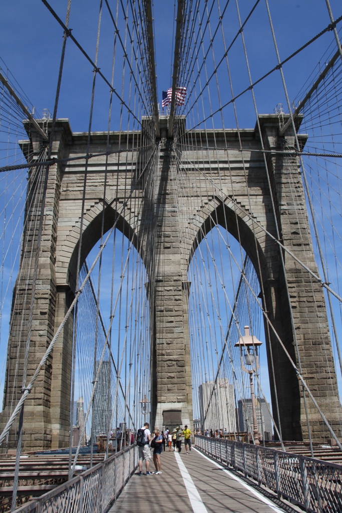 Atravessar a Ponte de Brooklyn a pé é um passeio imperdível. Deve ser feito de manhã no sentido de Brooklin para Manhattan (com o Sol nas costas). A maneira mais fácil é apanhar o Metro e sair em Brooklyn (estação de “High Street”), próximo do início da ponte.