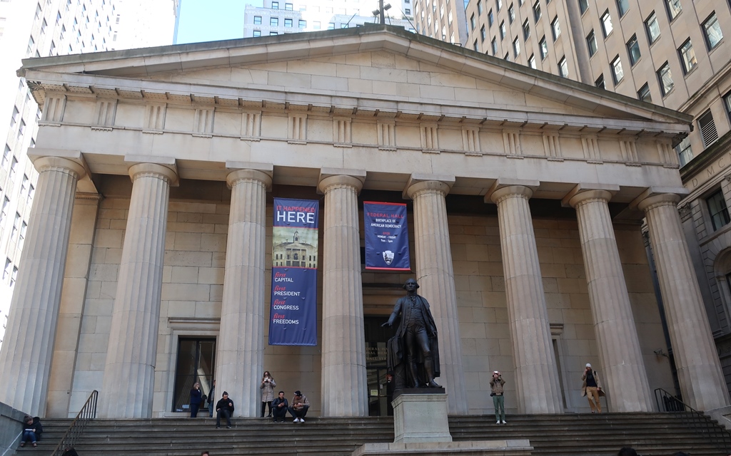Federal Hall – mais um edifício da Wall Street construído em 1842, em estilo neoclássico. Possui uma estátua de bronze de George Washington para assinalar o local onde o 1º presidente dos EUA prestou juramento. Situa-se no nº 26 da Wall Street ao nível da Nassau Street.
