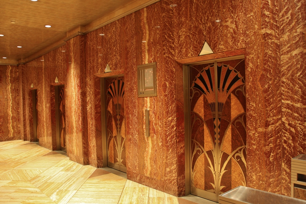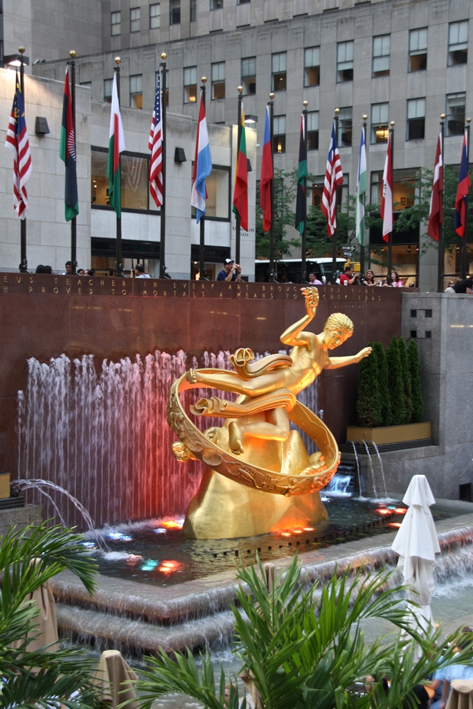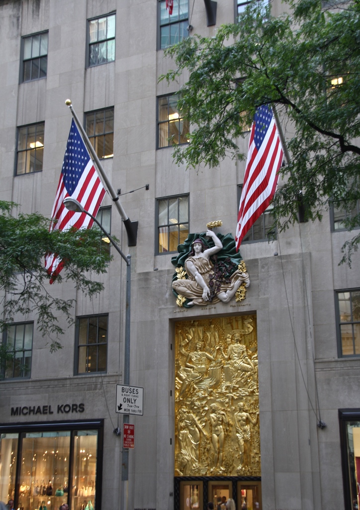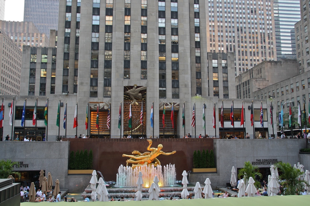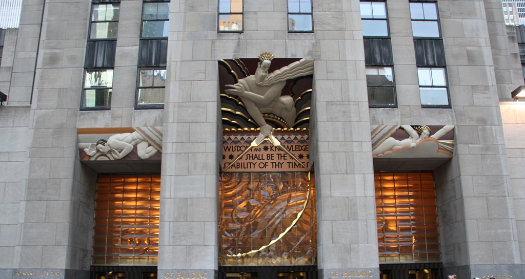 G.E. Building – É o elemento principal do Rockefeller Center. Esta estreita torre de 70 andares apresenta um perfil em degraus ao longo da sua altura.