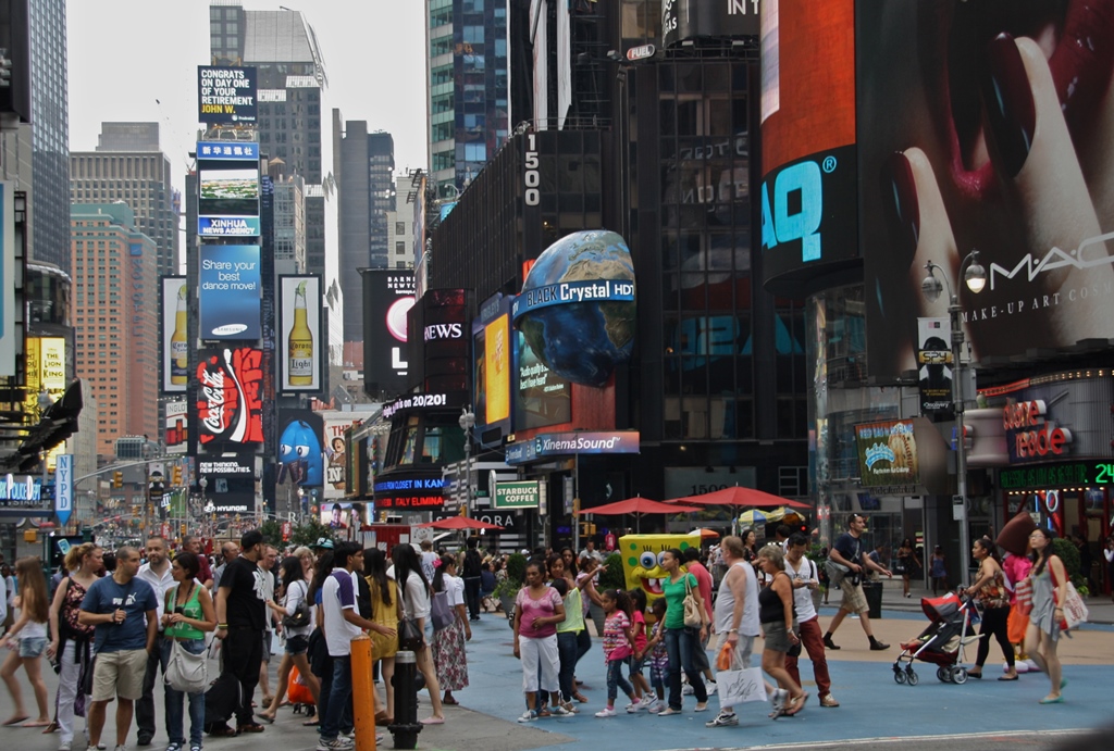 Times Square vulgarmente apelidada de “Encruzilhada do Mundo“, resultado de vários cruzamentos e esquinas é, tão somente, o cruzamento mais famoso de NY representando também o símbolo do animado Theater District, que inclui a Broadway.