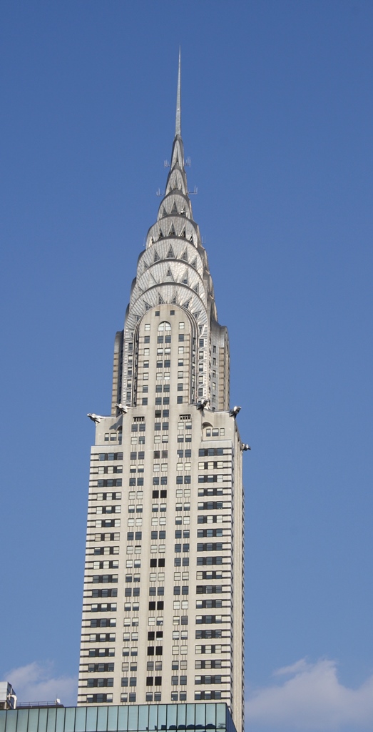 Quando foi inaugurado em 1930 era o edifício mais alto dos Estados Unidos da América e do mundo (ultrapassando a Torre Eiffel). Ainda assim é considerado o edifício com a mais alta estrutura de tijolos do planeta. Este edifício, como homenagem ao automóvel, em art déco impõe-se pela sua flecha reluzente de aço inoxidável, bem como pelos seus tampões e pelas suas famosas gárgulas prateadas (inspiradas na figura do capot de um automóvel Chrysler), tornando-o algo impressionante.