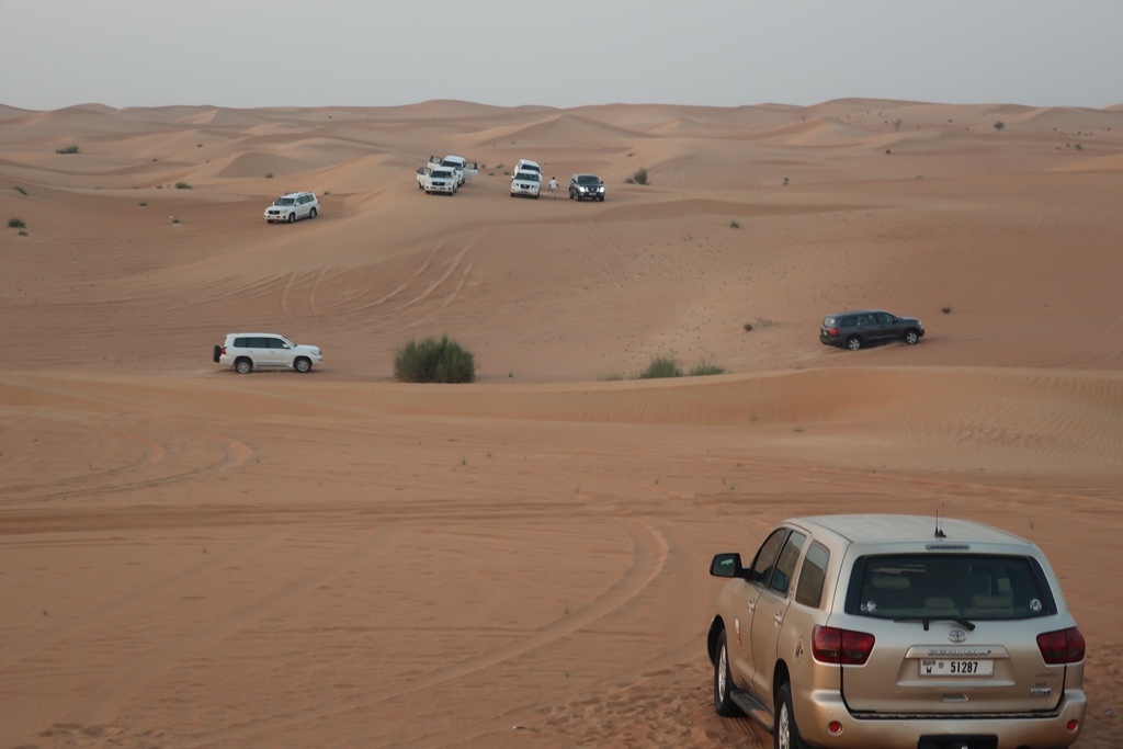 Os motoristas começam por esvaziar um pouco os pneus para poderem mais facilmente avançar a toda a velocidade pelo deserto, subindo e descendo as dunas, inclinando os jeeps até ao limite, mostrando assim os seus dotes de uma condução desportiva. É um autêntico “passeio de montanha-russa” pelas dunas douradas.