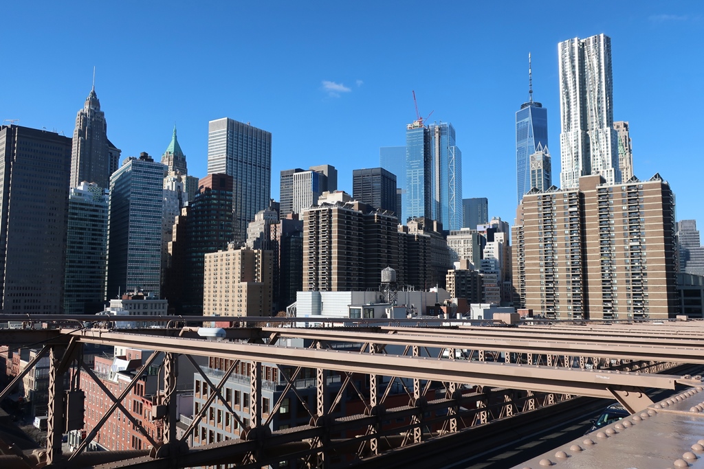 e poder observar e criar perspetivas díspares e lindíssimas, para uma imensidão de edifícios da zona de Manhattan, conseguidas ao longa da travessia da ponte. É só escolher se quer que os cabos da ponte sirvam de 1º plano, fazendo fotografias deslumbrantes e únicas ou utilizar apenas o facto de estar num plano superior.