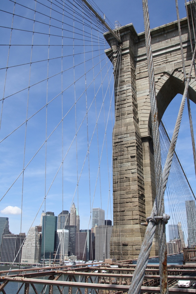 A Ponte de Brooklyn quando foi concluída em 1883, ligando Manhattan e Brooklyn, era a maior ponte suspensa do mundo e a primeira a ser construída em aço. Foi uma obra de engenharia impressionante que ainda hoje é notável. O engenheiro alemão, John Roebling, que teve a ideia de uma ponte que cruzasse o rio East e que a projetou, acabou por não ver o seu sonho concretizado devido a um acidente. Foi o seu filho e a mulher que assumiram as lides. A construção da ponte durou 16 anos a troco de trabalho árduo de 600 homens e a perda de 20 vidas (incluindo a do engenheiro). Tornou-se um símbolo da cidade de NY.