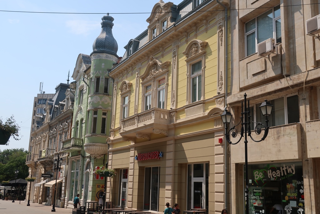 | ruas principais: Stefan Stambolov e Nezavisimost | lojas com uma oferta interessante : de marcas internacionais e búlgaras, de souvenirs: melhor local na Bulgária para comprar peças de vestuário com os bordados típicos. com edifícios interessantes ; empenas decoradas |