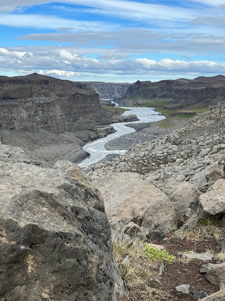Partindo de Egilsstaðir apanha-se a estrada 1 e a seguir a 923 para chegar a Stuđlagil Canyon, representando isso 72 km, 1 h. Depois de alcançar o desfiladeiro tem várias formas do apreciar. Ou só de cima ou caminhando pelos trilhos e aí pode ir observando essa maravilha. Quanto a nós melhor ainda será descer a escadaria onde há uma plataforma da qual se tem uma perspetiva mais de perto e mais completa. Não há adjetivos para qualificar tal maravilha!