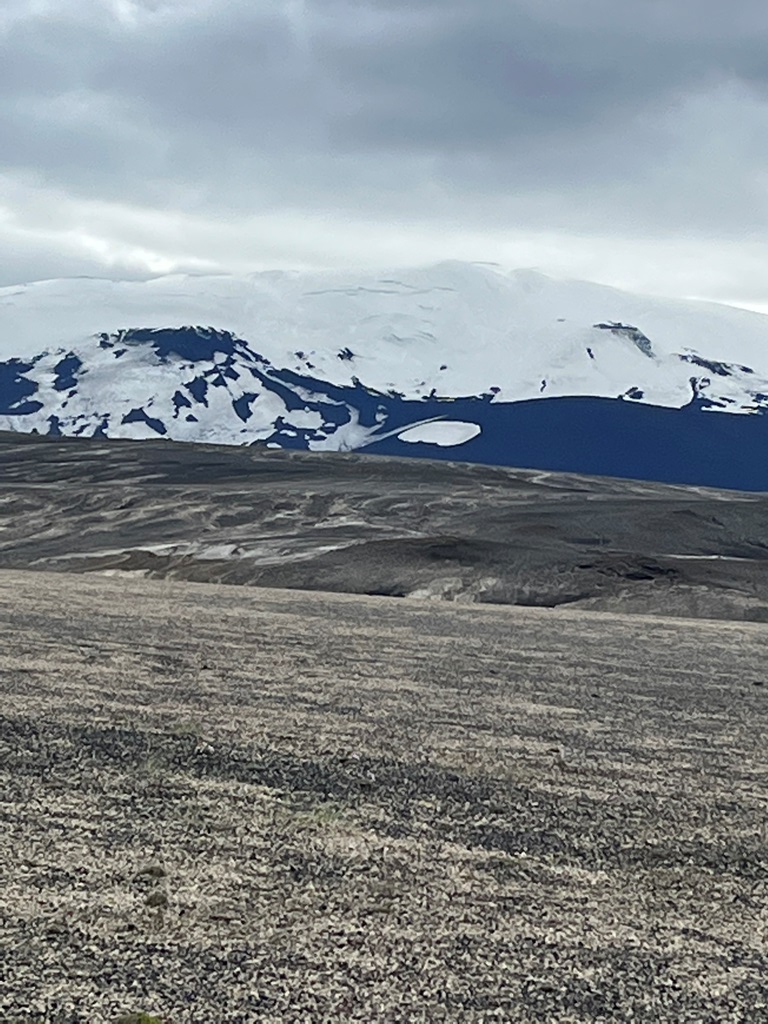 Com muita pena nossa não atingimos a borda da cratera pois o piso da estrada não inspirava confiança. Então a cerca de 11km do Monte Hekla tivemos que abortar (nós e 1 um outro veículo) pois após 1 ou 2 tentativas considerámos que poderíamos não conseguir avançar ou acontecer-nos essa situação no regresso e estando sozinhos por aquelas bandas, era difícil calcular como se resolveria a situação. Ficámos no ponto que tinha 1 placard com informação acerca de HEKLA – Volcanic Eruption Hazard (Perigo de Erupção Vulcânica). Mas valeu a pena!