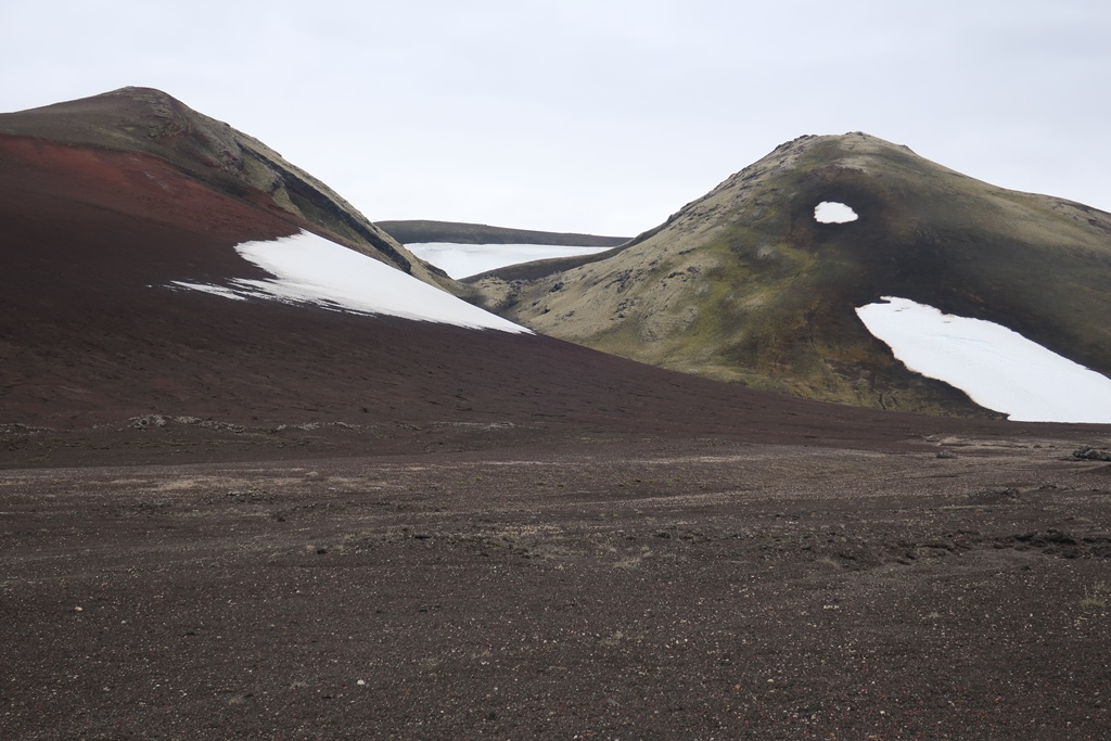 A estrada desenvolvia-se em terrenos baldios vulcânicos e emocionantes montanhas com alguma neve cuja forma atual reflete os milhares de anos de atividade vulcânica. Paisagem singular!