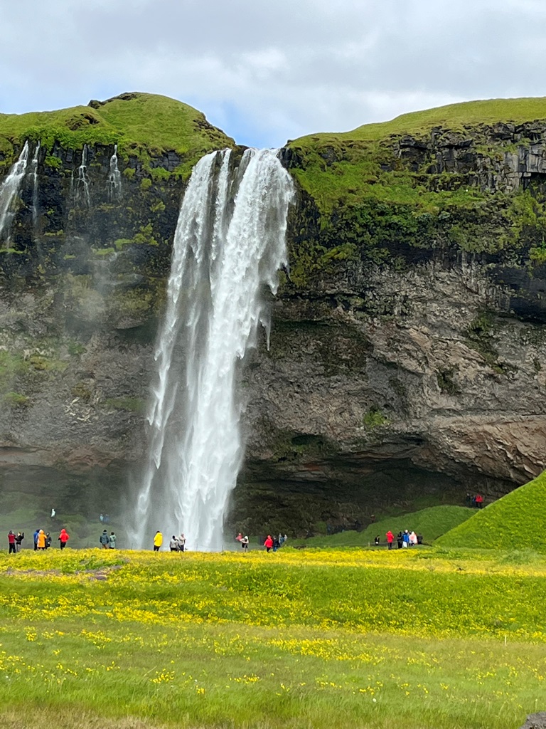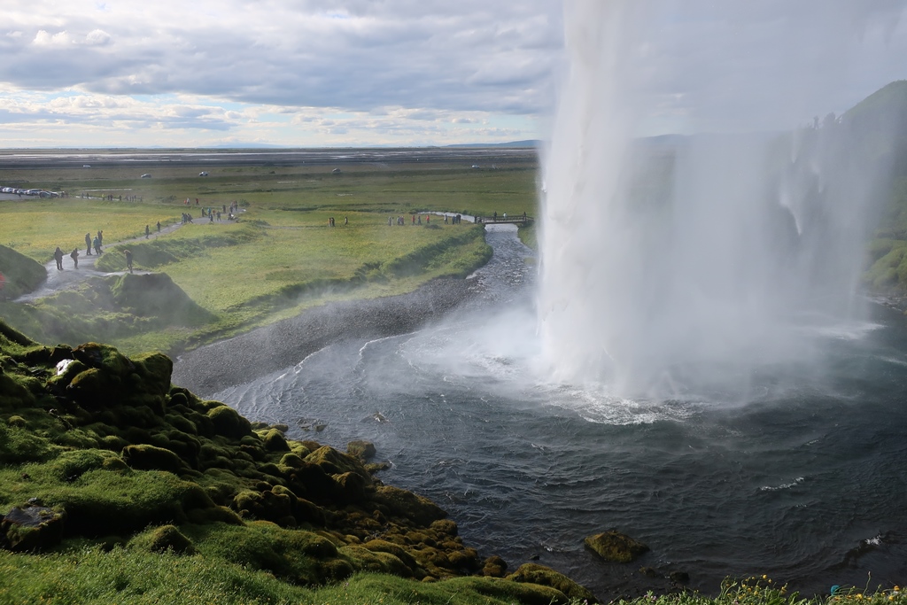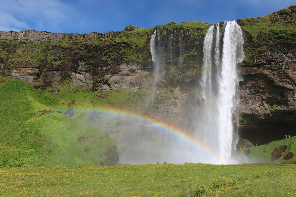 A cascata Seljalandsfoss, com 65 metros de altura, localizada no sul da Islândia, à beira da estrada 1, é uma das mais impressionantes, visitadas e fotografadas do país.