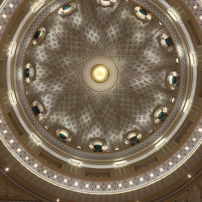 Há outros elementos que chamam à atenção, salientando-se entre eles, uma cúpula, com 60 metros de altura e um diâmetro de 37 metros bem como um candelabro com 350.000 peças de cristal.