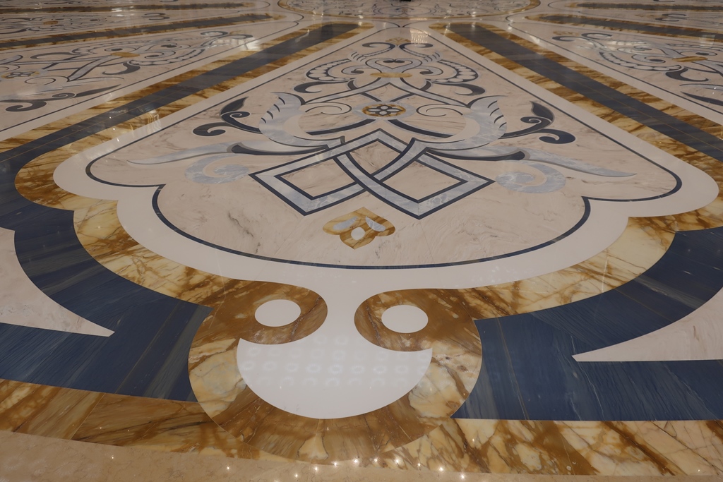 os cubos espelhados posicionados em cada canto desta zona primorosamente trabalhada, os quais realçam ainda mais o legado arquitetónico e artístico da região. É um salão de uma dimensão e grandiosidade inimagináveis. “It is really impressive and unique in the world”.