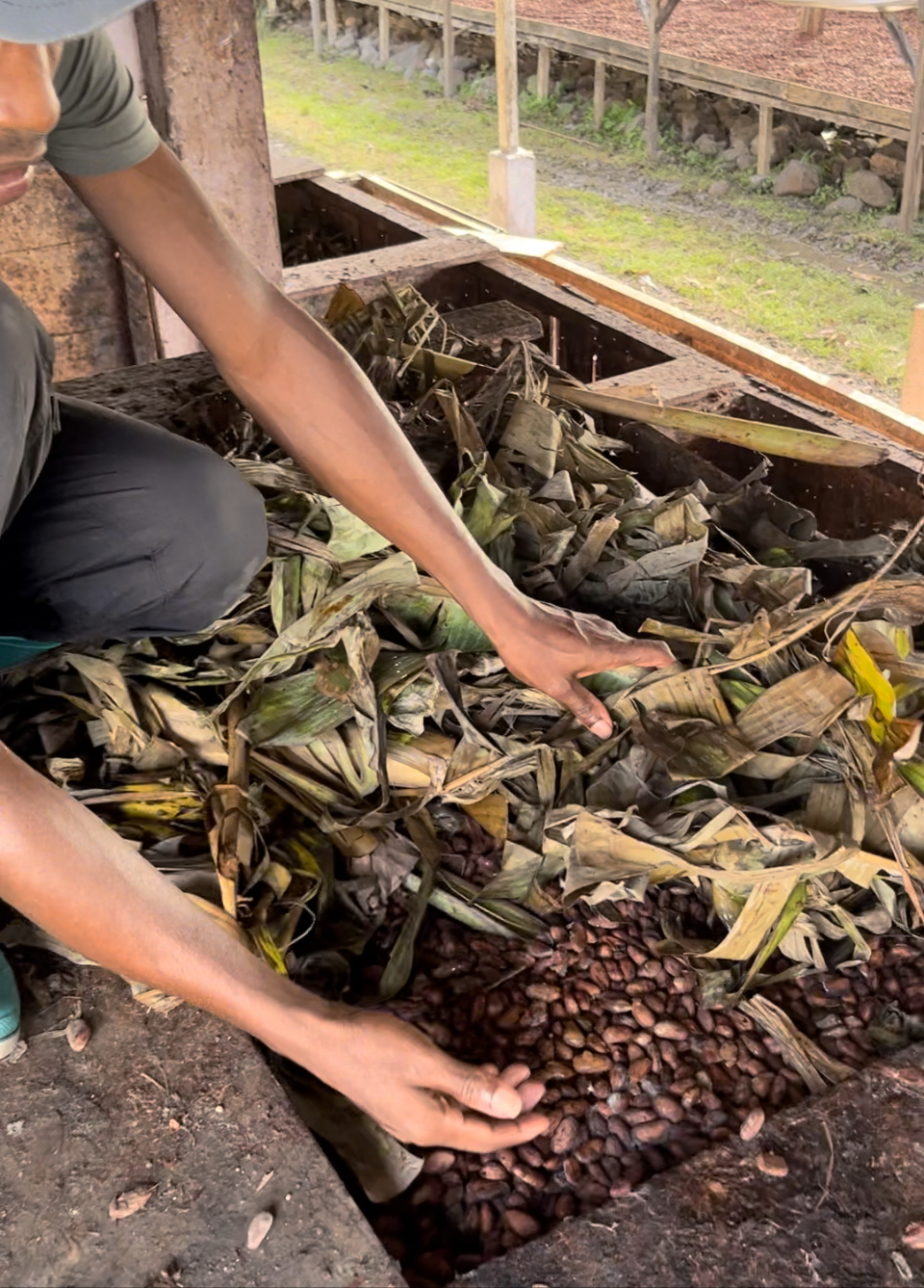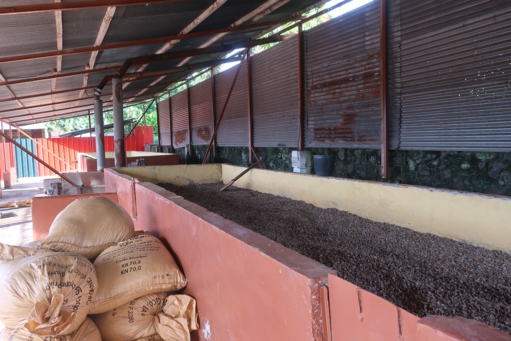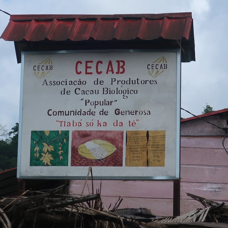 Em seguida o guia foi connosco mostrar-nos a sede da Cooperativa CECAB, produtores de cacau orgânico. Aí vimos as plantações de cacau, tendo-nos o guia explicado os vários momentos de processamento do cacau, desde a secagem ao armazém onde se encontravam uma imensidão de sacos para exportação.