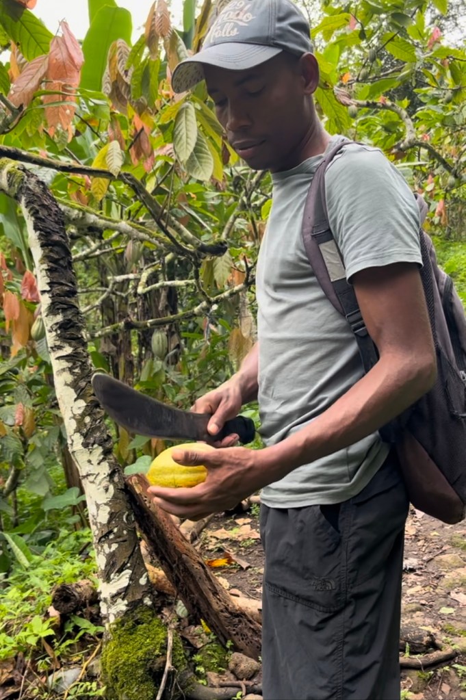 Nós falámos com um rececionista do alojamento Mucumbli (local maravilhoso onde pernoitámos) manifestando desejo de fazer um percurso que nos possibilitasse um pouco o contacto com a natureza e ficar a conhecer também um pouco acerca do mundo do cacau. De imediato o rececionista chamou um colega que era guia. Ele explicou-nos que poderíamos fazer a Rota da Água e depois a Rota do Cacau Biológico, se quiséssemos e tivéssemos tempo, associando também o almoço na Roça Monte Forte, seguido de visita e explicação acerca do cacau. Assim foi!