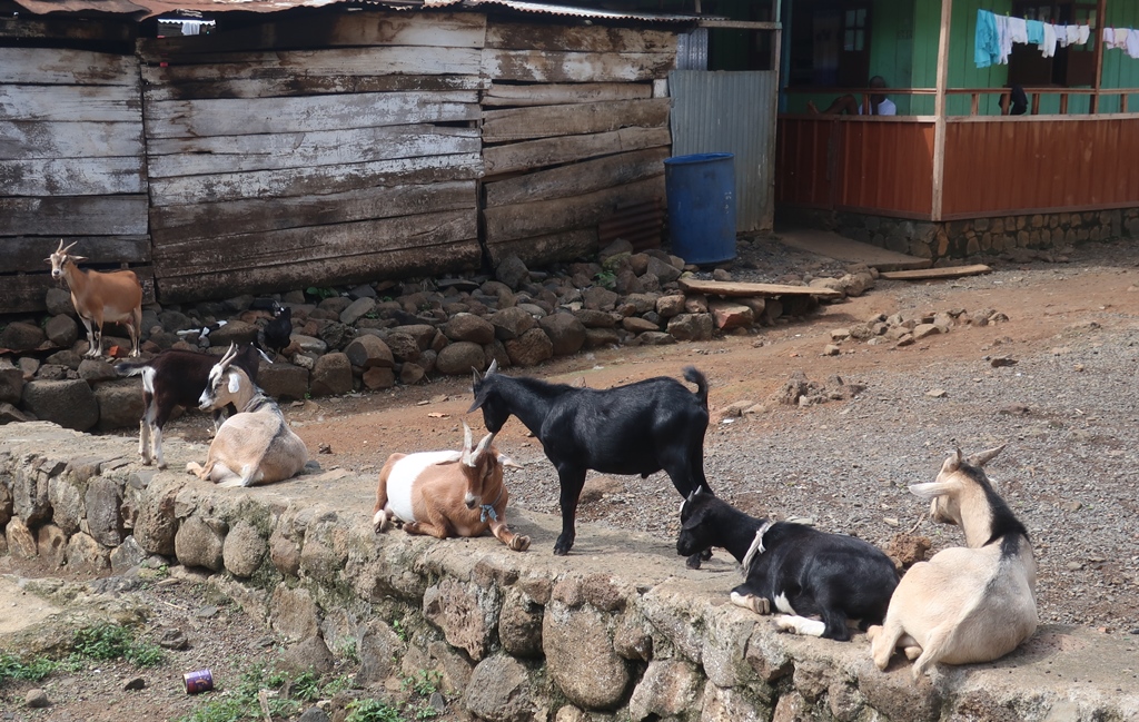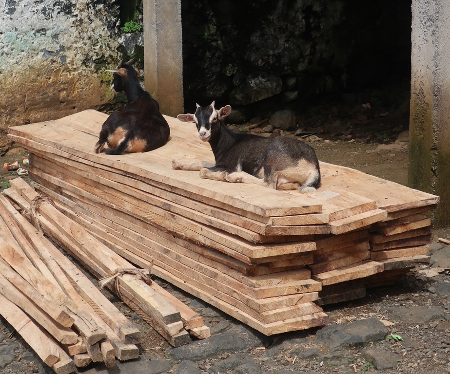 Começámos, então, a Rota do Cacau Biológico tendo passado pela Roça Ponta Figo (onde, segundo o guia, vive uma comunidade de cabo verdianos que terão vindo para a ilha nos anos 30) para nos encaminharmos para a Roça Generosa (do séc. XVIII), onde fizemos uma paragem para contactar de perto com o ambiente descontraído que por ali se vivia – crianças a brincar, adultos a conversar, cabras – umas a saltitar outras a descansar. É algo que nos escapa !