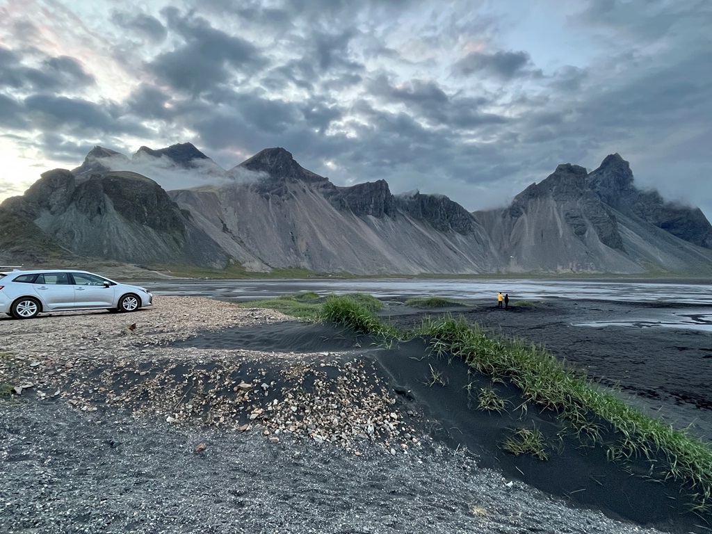 Ao lado da Viking Village, cenário criado para um filme, encontra-se a deslumbrante península de Stokksnes, também conhecida como Vestrahorn, que integra o sul da montanha Kastarárfjall, a montanha Vestrahorn (com 454 metros de altura),