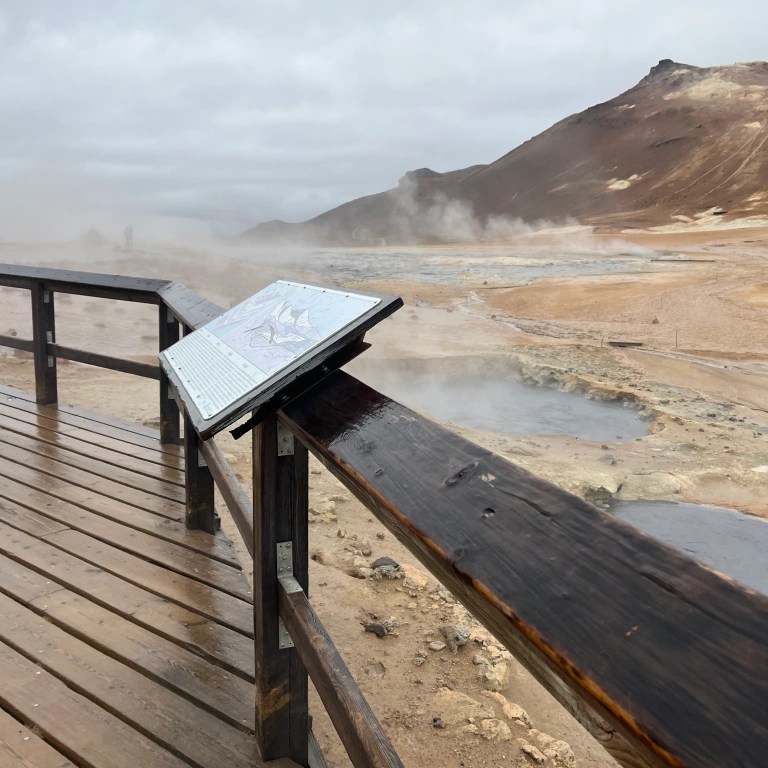 Situa-se apenas a 4 quilómetros de Reykjahlíð, no norte da Islândia, perto do lago Myvatn.
