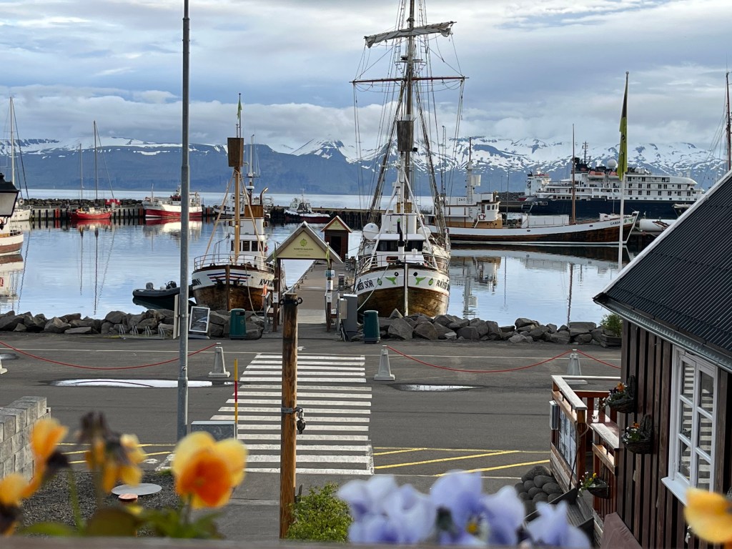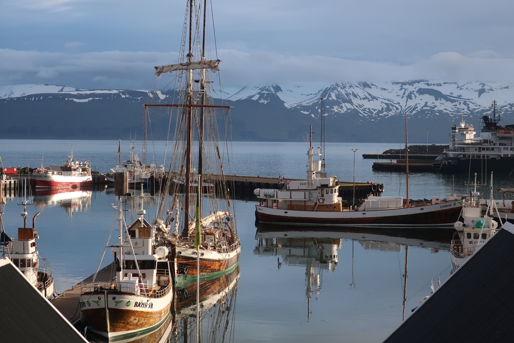 Depois de termos gozado à pressa o local onde íamos dormir (2 noites), dirigimo-nos para Húsavik onde iríamos jantar. Mais um local imperdível! À medida que começámos a vislumbrar o porto, os barcos, o casario colorido iluminado por um sol de fim de tarde, ficámos extasiados! Há locais que nos deixam de queixo caído. Queríamos muito jantar e aproveitar o facto do sol não se pôr para a seguir dar um giro por Húsavik. Assim fizemos e só nos encaminhámos para o alojamento porque tinha sido um dia longo e tínhamos muitos mais pontos de interesse agendados para o dia seguinte.
