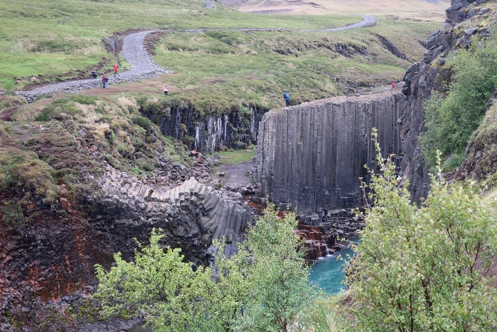 O Desfiladeiro de Stuðlagil (ou seja Colunas de Basalto) é um dos mais encantadores do mundo pela imensa “coleção” de colunas de rocha basáltica. Tem 500 metros de comprimento e colunas de basalto com 20 a 30 metros de altura de ambos os lados do rio.