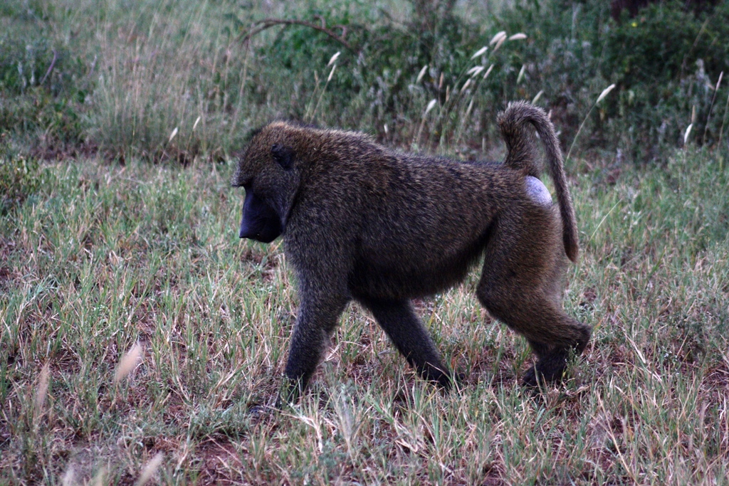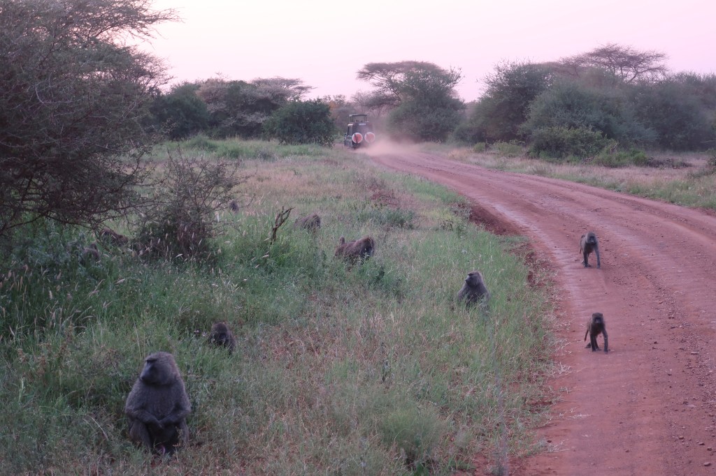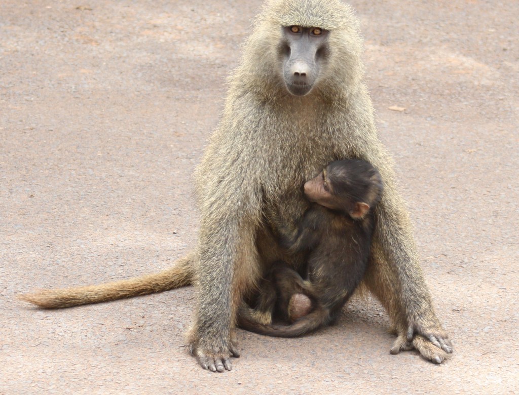 Ao longo do trajeto ainda vimos algumas hienas, um elande, umas leoas, uns javalis, e para nos cumprimentar e agradecer a nossa presença no parque Serengeti, surgiu um macaco e um filhote!