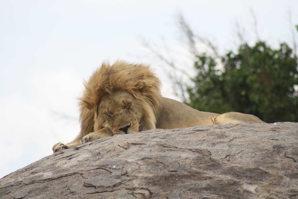 No cimo de uma rocha alguém “gozava dos rendimentos”: um Rei Simba! Foram momentos deslumbrantes nas nossas vidas! Todo o mundo acompanhava a imobilidade ou qualquer movimento que o amigo leão fizesse! Foi difícil abandonar o local em questão! (Sabiam que o leão é o mais alto dos felinos e tem uma vida bastante curta: vive em média 10 anos?)