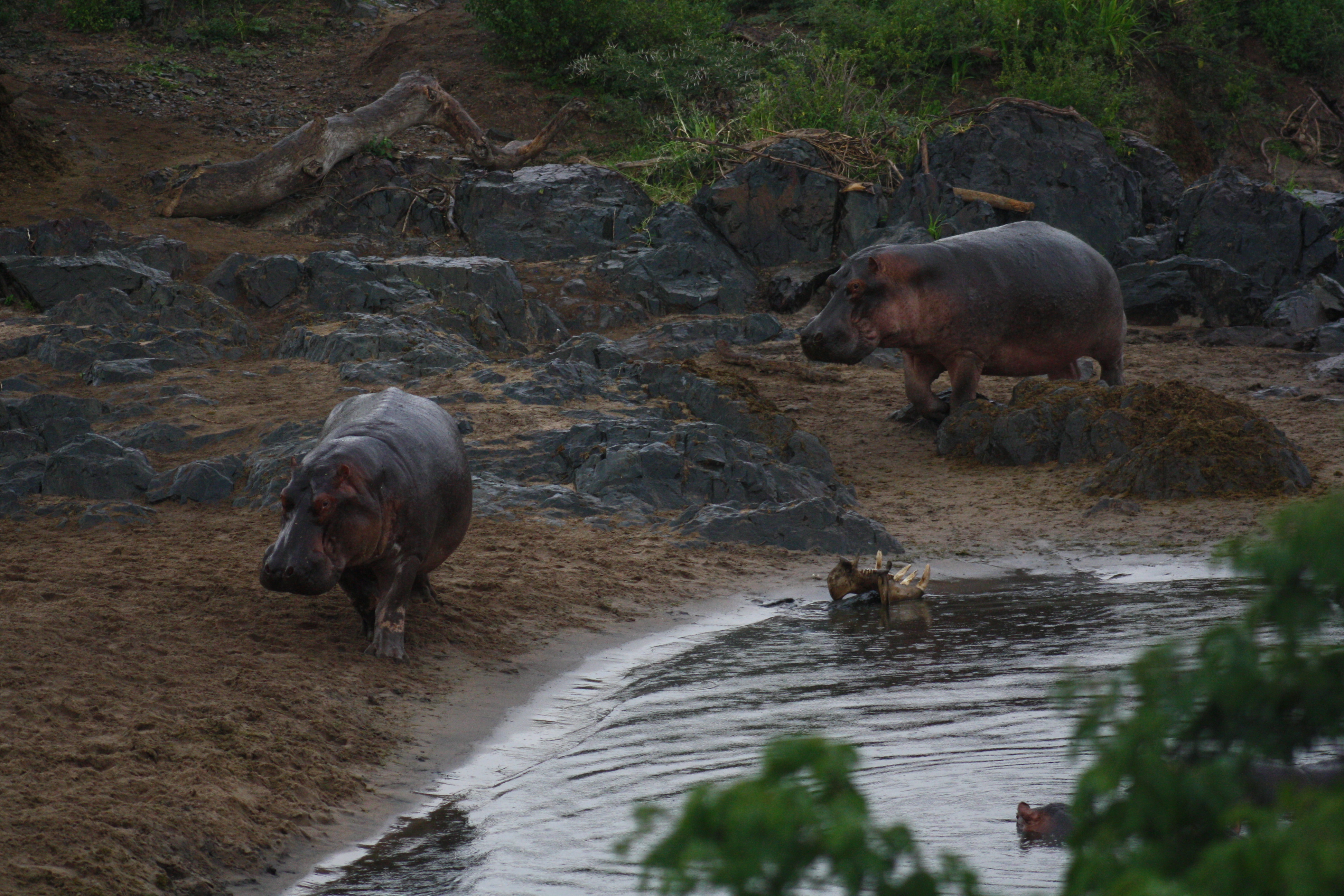 Estes estavam a trabalhar arduamente: a produzir “Channel number 5″! É inimaginável o cheiro dos seus excrementos! Diz-se que o ato de eles girarem a cauda enquanto defecam de modo a distribuir os seus excrementos por uma grande área pode ser sinónimo de marcar território bem como o que interpretamos como “bocejos” são na verdade exibições dos seus caninos gigantes destinados a afastar predadores. (Eles destacam-se por ser animais que vivem grande parte do tempo no ambiente aquático e por serem muito agressivos quando ameaçados, sendo responsáveis pela maioria das fatalidades ocorridas com animais selvagens e com humanos).