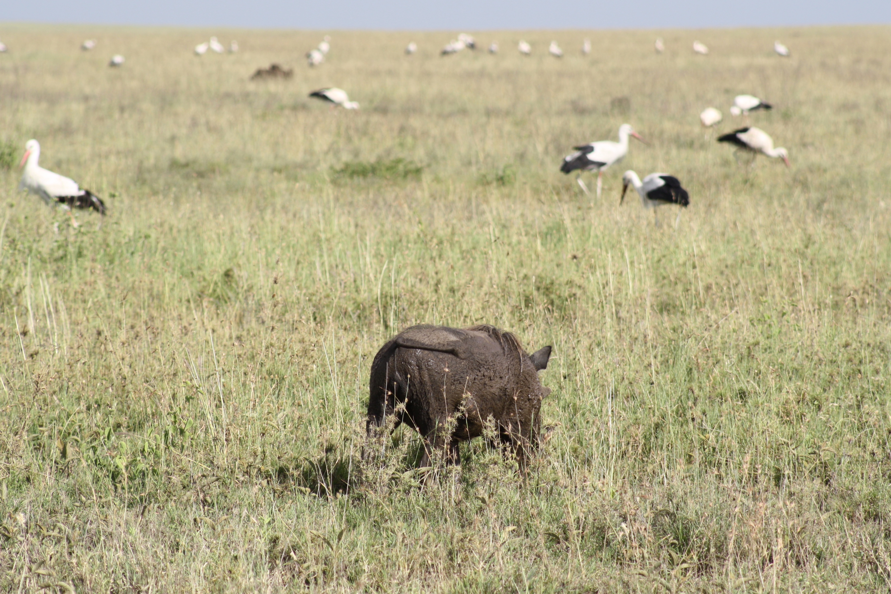 A seguir, ao longo da incomensurável savana, um bando de cegonhas deslocavam-se oscilando entre caminhar ou a voar.