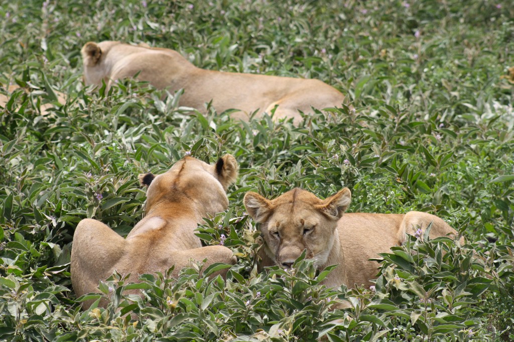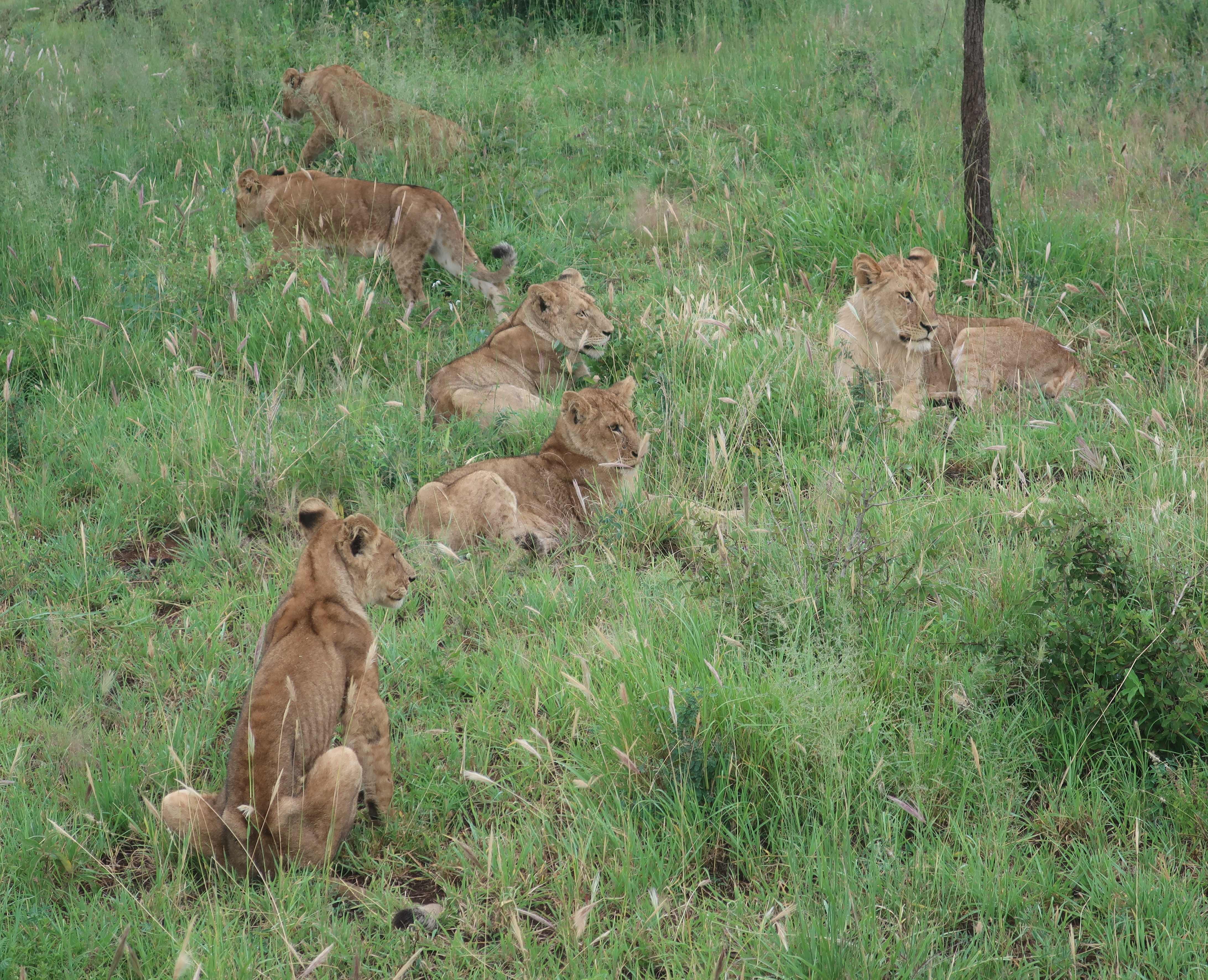 os drivers comunicavam uns com os outros e imediatamente a seguir lançaram-se numa corrida desenfreada. Seria para quê? Adivinhem só!? Uma série de leoas, umas a rebolar-se no chão e outras a “descansar do trabalho árduo”! Que fazer? Escondermo-nos dentro do jipe com medo ou aproveitar estes momentos ao máximo? É claro que só restava uma hipótese: a 2ª! Deliciámo-nos a contemplá-las passando isso por tirar o máximo número de fotografias e fazer vídeos para mais tarde recordar essas vivências!
