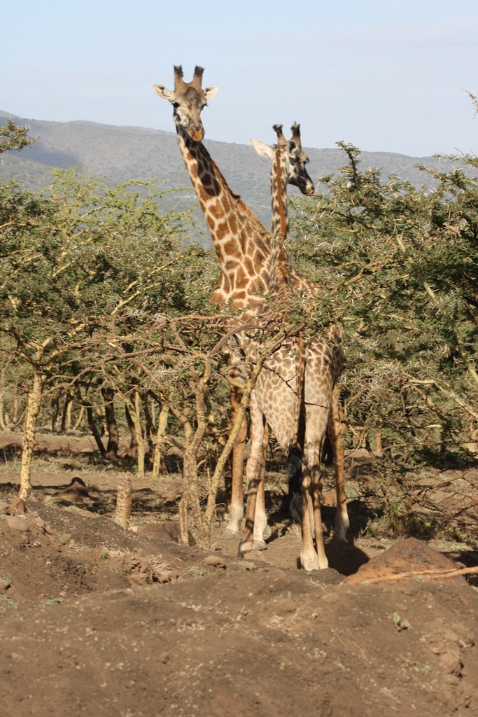 Ainda assim, ainda vimos mais algumas elegantíssimas girafas! Umas que insistiam em caminhar no trilho à nossa frente, outras que se esgueiravam, do lado direito ou esquerdo nas acácias para se alimentarem ou ainda outras que pareciam exibir-se ou mostrar-se, sendo 2 ou mais de cada vez!