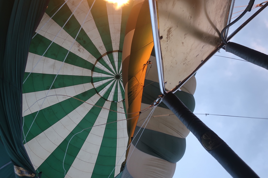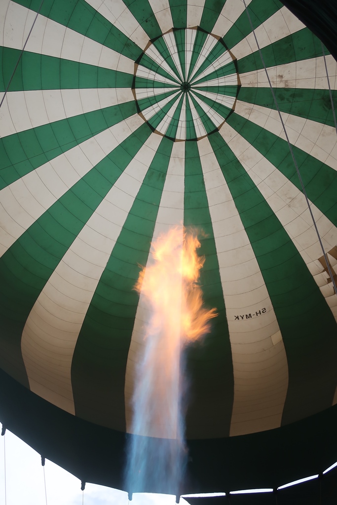 Olhando para um plano superior já víamos também alguns balões no ar que estavam a desfrutar também do amanhecer! Antes do nosso pequeno almoço tomado em plena natureza (precisamente no local onde no dia anterior tínhamos visto uma família de leopardos, através dos binóculos!) ainda nos apareceu uma senhora hiena!