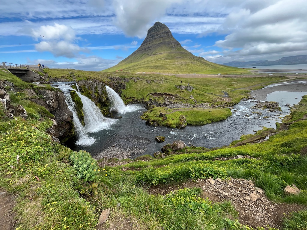 A montanha Kirkjufell com 463 metros de altura com uma curiosa forma cónica (de torre de igreja) quase perfeita, localizada à beira mar e tendo por perto uma cascata, torna-a um cenário perfeito de tal forma que é das paisagens mais fotografadas da Islândia.