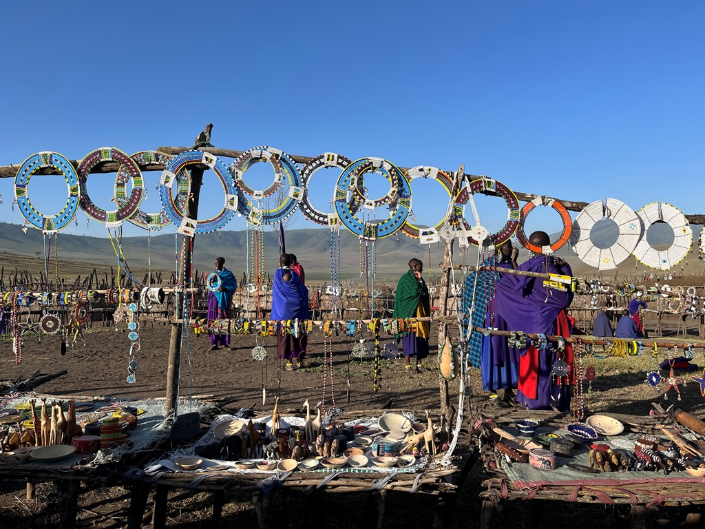 – 4º – E só já faltava passar pelo “mercado” ou bancas ao ar livre com uma oferta considerável desde: os famosos colares Maasai, as pulseiras, os brincos, malas, pratos em madeira bem como peças decorativas, etc… mas com preços inflacionados, próprios para turistas endinheirados! Se, no entanto, estiverem interessados em comprar alguma/algumas peças ofereçam um preço que vos pareça justo! Acabámos por deixar um donativo!