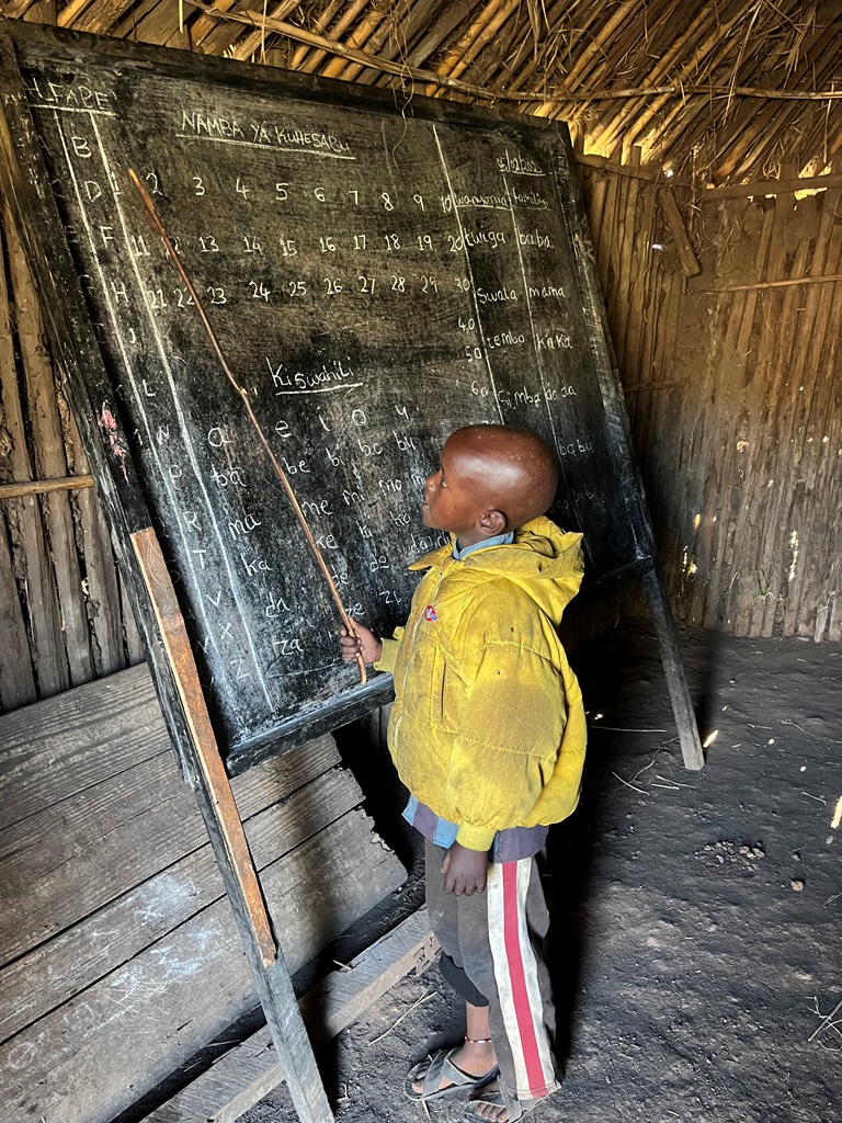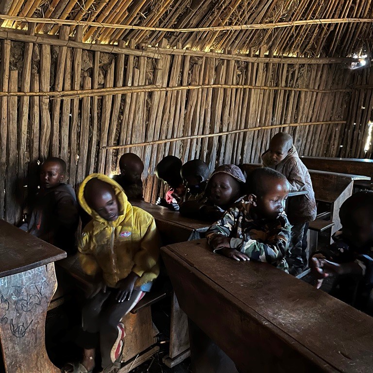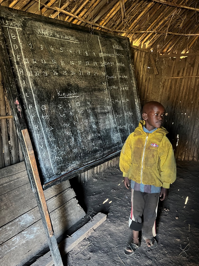 – 3º – De seguida e a uns passos de distância localizava-se a escola com capacidade para cerca de 18 – 20 crianças no máximo. (Quando estas crianças se tornam maiores têm que ir frequentar outras escolas fora da aldeia tendo que percorrer alguns quilómetros diariamente). Junto à secretária da professora existe uma caixa onde se pode deixar a quantia que se quiser enquanto donativo.