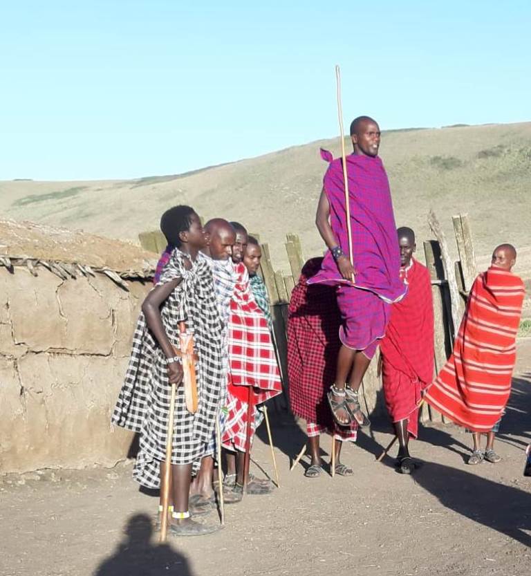 Eles têm uma vitalidade tão singular que conseguem dançar e saltar durante horas, balançando a cabeça e o tronco para trás e para a frente, impulsionando o salto, pulando o mais alto possível sendo quase impossível vencer um Maasai numa competição de salto.