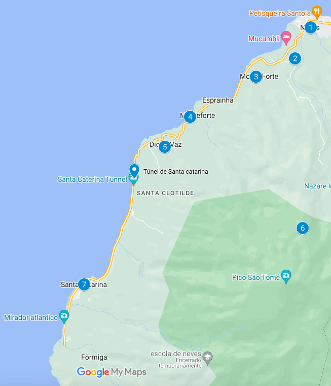 | Santa Catarina | aldeia piscatória situada quase no final do troço transitável (na zona oeste da ilha) |