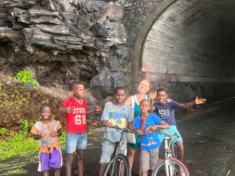 Quando ao longe se começou a vislumbrar o Túnel, ouvimos também um som compatível com água – era uma cascata para enriquecer ainda mais o cenário bem como crianças com roupas bem coloridas a vender cocos que eles se limitam a apanhar quando eles caem! É toca a estacionar e dar continuidade à reportagem fotográfica, nela tendo sempre que incluir as crianças que se abeiram de nós para também elas figurarem nas nossas recordações.